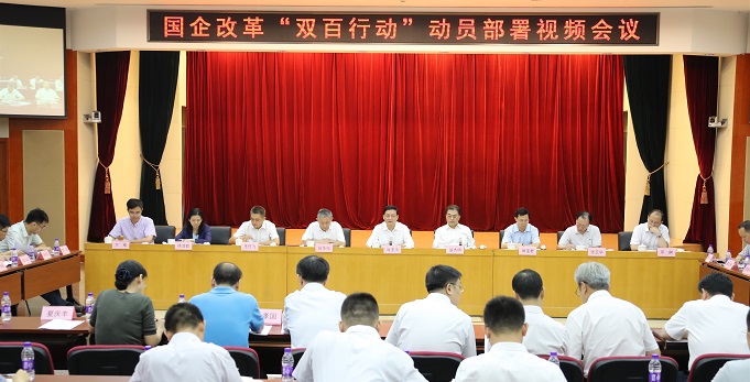 國企改革“雙百行動”動員部署視頻會議8月17在國資委召開。國務(wù)院國有企業(yè)改革領(lǐng)導(dǎo)小組辦公室主任、國資委主任肖亞慶出席會議并講話,強(qiáng)調(diào)要深入學(xué)習(xí)貫徹習(xí)近平新時(shí)代中國特色社會主義思想和黨的十九大精神,按照國務(wù)院國有企業(yè)改革領(lǐng)導(dǎo)小組第一次全體會議的部署和要求,扎扎實(shí)實(shí)把“雙百行動”抓出成效,充分發(fā)揮示范帶動作用,將全國國有企業(yè)改革向縱深推進(jìn)。國務(wù)院國有企業(yè)改革領(lǐng)導(dǎo)小組辦公室副主任、國資委副主任翁杰明主持會議。國務(wù)院國有企業(yè)改革領(lǐng)導(dǎo)小組辦公室成員單位有關(guān)負(fù)責(zé)同志,國務(wù)院國資委有關(guān)廳局負(fù)責(zé)同志,“雙百行動”專家組成員代表在主會場參加會議。各地國資委主要負(fù)責(zé)同志,“雙百行動”涉及的中央企業(yè)集團(tuán)及相關(guān)部門負(fù)責(zé)同志、“雙百行動”企業(yè)主要負(fù)責(zé)同志在分會場參加會議。