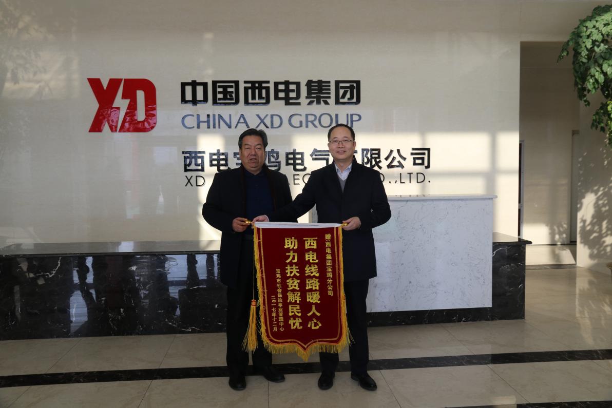 1月11日下午,寶雞市社會(huì)保險(xiǎn)事業(yè)管理中心一行6人,為西電寶雞電氣有限公司送來(lái)了印有“西電線路暖人心,助力扶貧解民憂”的錦旗,感謝西電寶雞電氣有限公司對(duì)他們的扶貧點(diǎn)—寶雞市陳倉(cāng)區(qū)坪頭鎮(zhèn)南皂村的精準(zhǔn)扶貧、大力幫扶。
