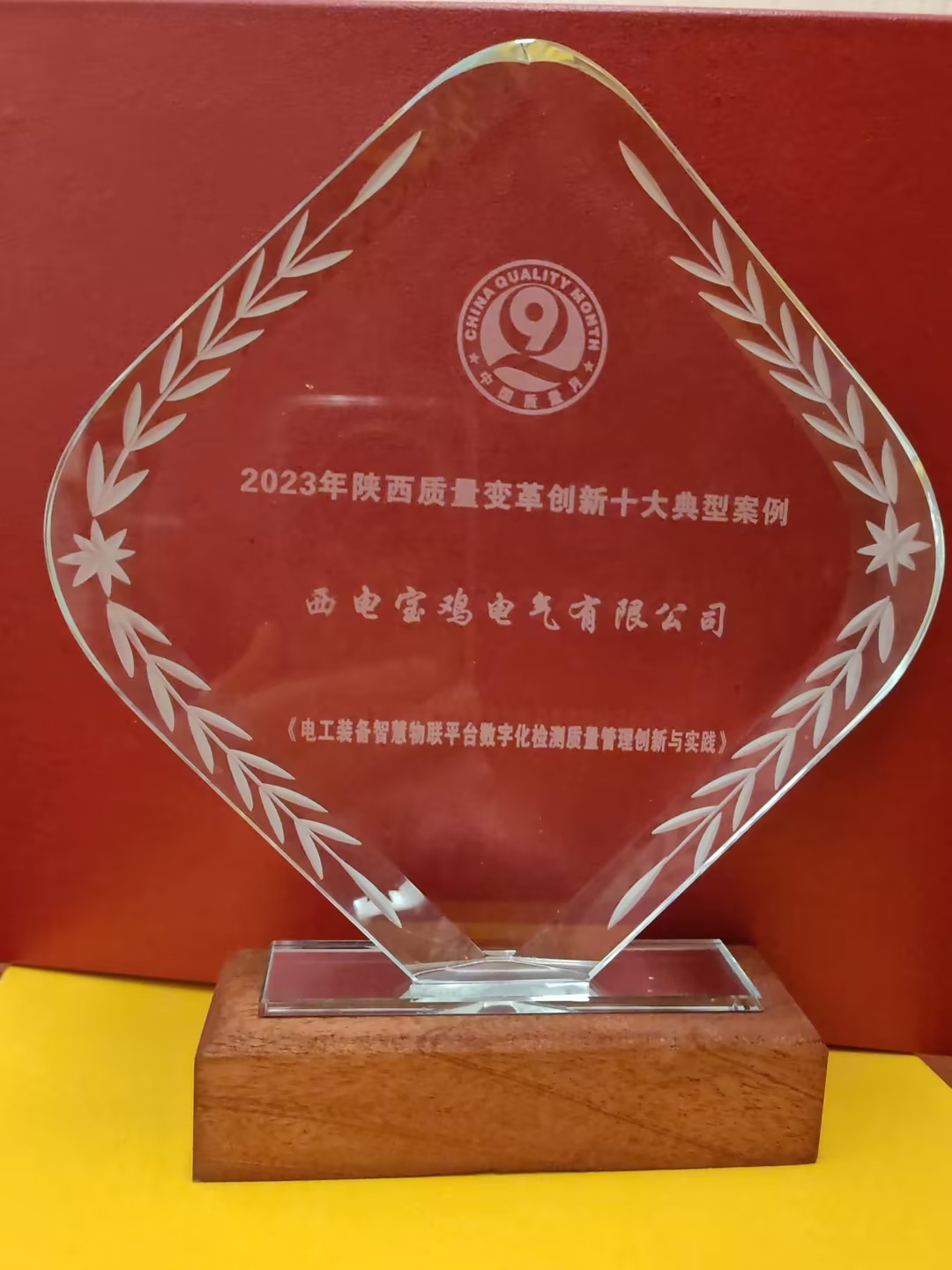 2023年9月12日上午,從第二屆陜西省首席質量官大會上傳來捷報,西電寶雞電氣選送的《電工裝備智慧物聯(lián)平臺數(shù)字化檢測質量管理創(chuàng)新與實踐》質量變革創(chuàng)新案例榮獲“2023年陜西質量變革創(chuàng)新十大典型案例”獎,這是繼2021年西電寶雞電氣榮獲第九屆陜西省質量獎提名獎,2022年榮獲陜西省QC成果和質量信得過班組獎項后再次獲得省級獎項的又一次榮譽。